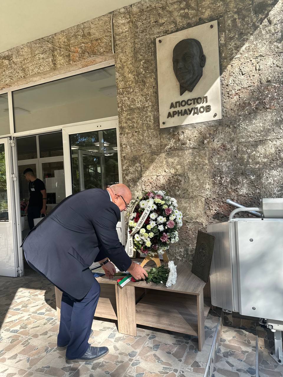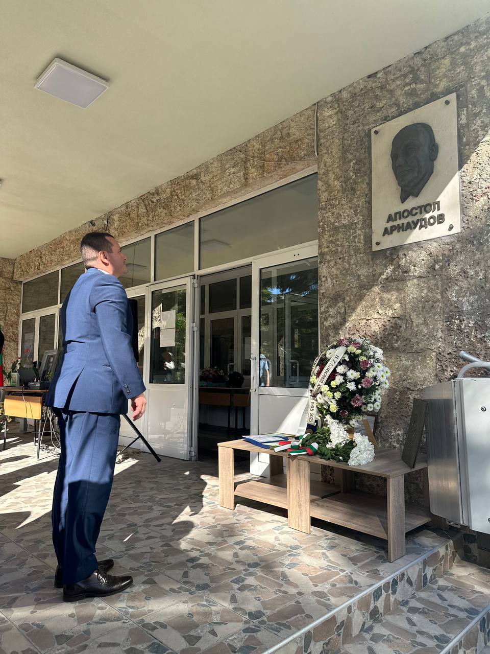 С тържествена церемония пред главния вход на ПГ по електротехника и електроника „Апостол Арнаудов“ бяха отбелязани днес 120 г. от рождението на патрона на русенското училище. Гости на церемонията бяха кметът Пенчо Милков и неговият заместник Енчо Енчев.