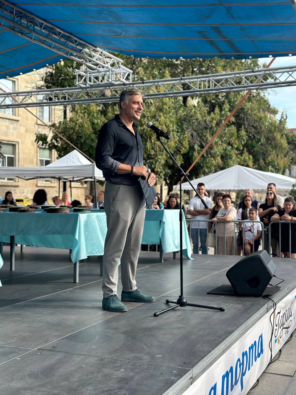 „Днес е ден, в който трябва да се замислим как от няколко най-обикновени съставки можеш да направиш чудесна торта. Така е и в живота. Аз ви пожелавам наглед обикновените моменти да съумявате да превръщате в чудеса като тортите днес“, обърна се кметът към присъстващите. Той изказа специални благодарности и към заместник-кмета Златомира Стефанова и нейния екип, които се погрижиха за организацията на събитието. Кметът се пошегува, че е щастлив, че тази година е отпаднала тежката му задача от предишните 3 издания на празника лично да опитва от тортите, като тази чест днес имаше единствено журито.
