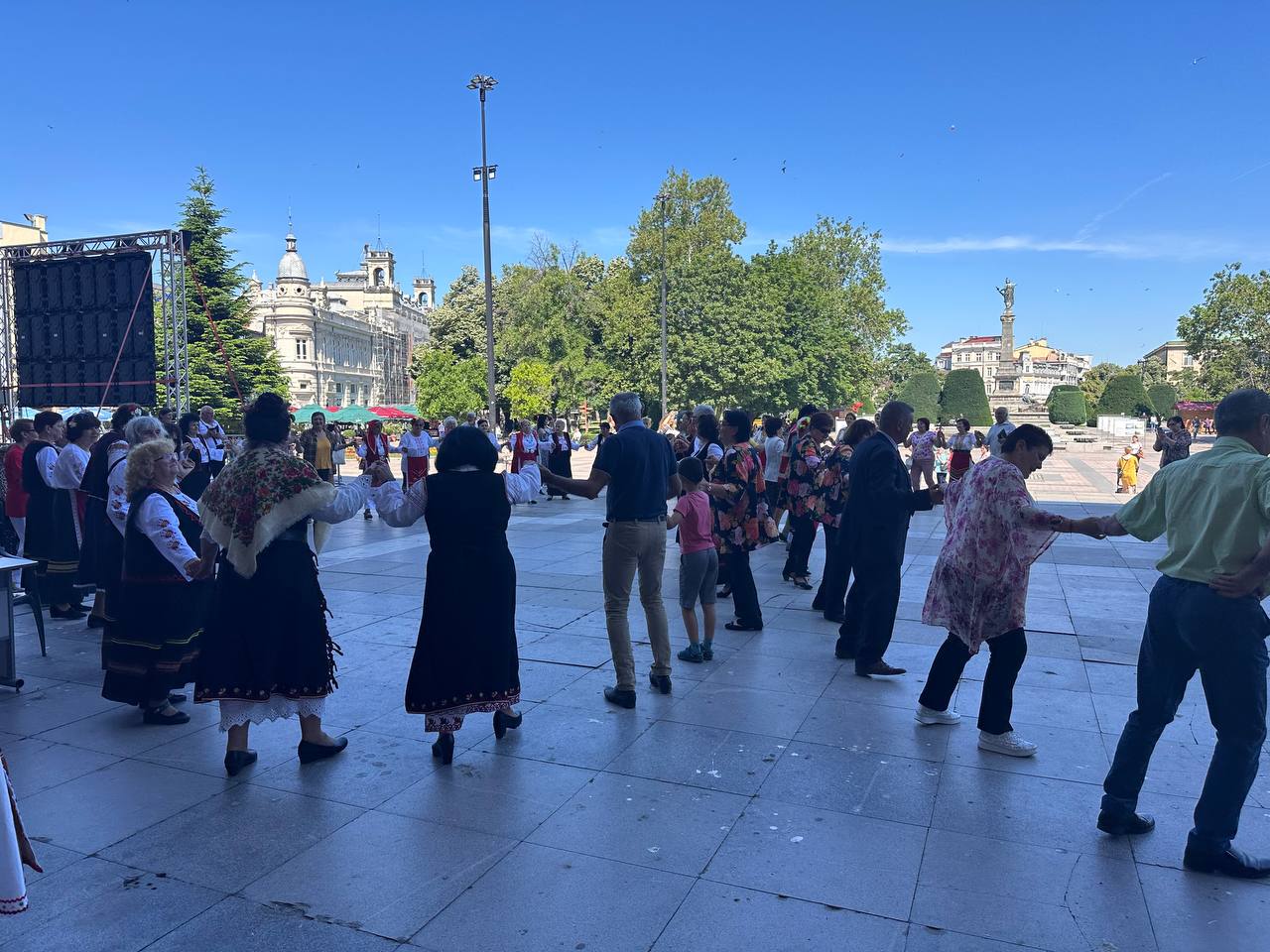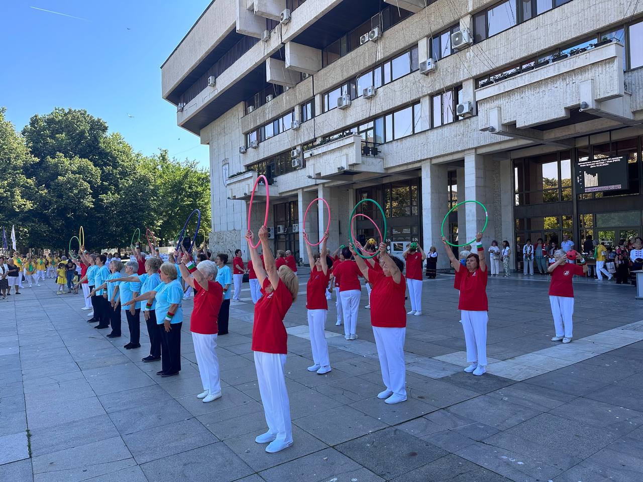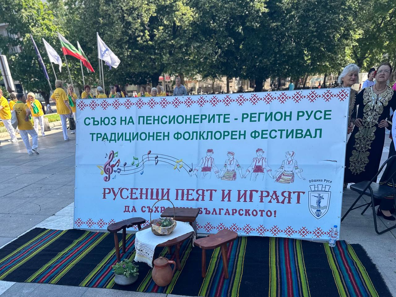 18-ото издание на фестивала „Русе пее и танцува – Шарено хоро“ се проведе пред сградата на Община Русе. Фолклорният празник събра 20 певчески и танцови състава от русенско. Проявата се организира от Съюза на пенсионерите – Регион Русе и бе открита от кмета Пенчо Милков.