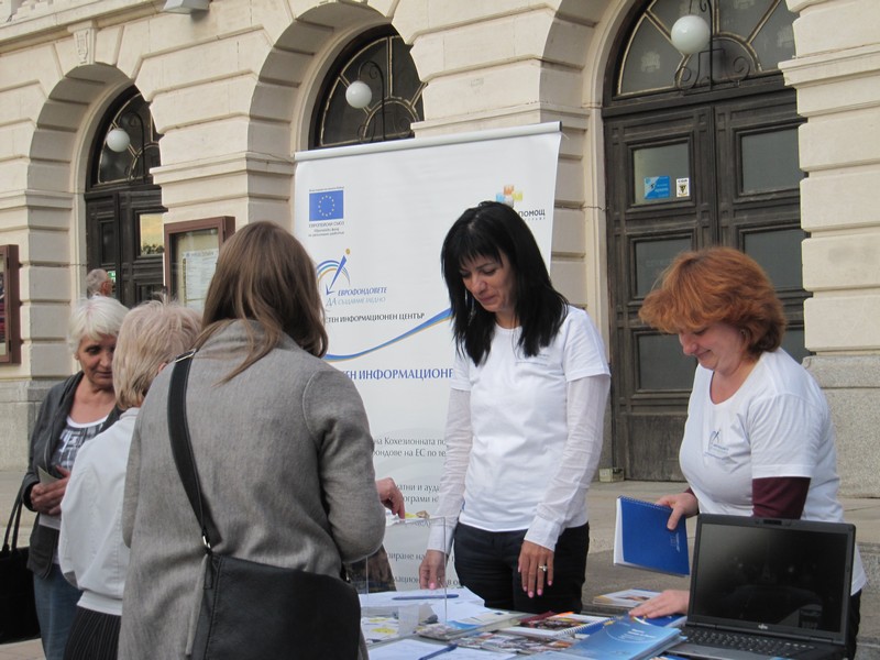 Екипът на Областния информационен център – Русе раздаде рекламни и информационни материали за проекти, реализирани в областта. Инициативата на ОИЦ - Русе е част от национална кампания, която има за цел да отчете до каква степен хората в различните региони са запознати с приноса на ЕС в страната.