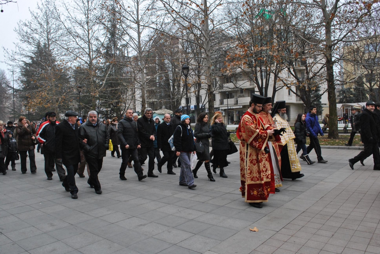 По традиция, литийното шествие по повод Богоявление тръгна от Катедралния храм “Света Троица” веднага след края на празничната литургия. То премина през центъра на града и достигна до Понтон №8 на Русенския кей.