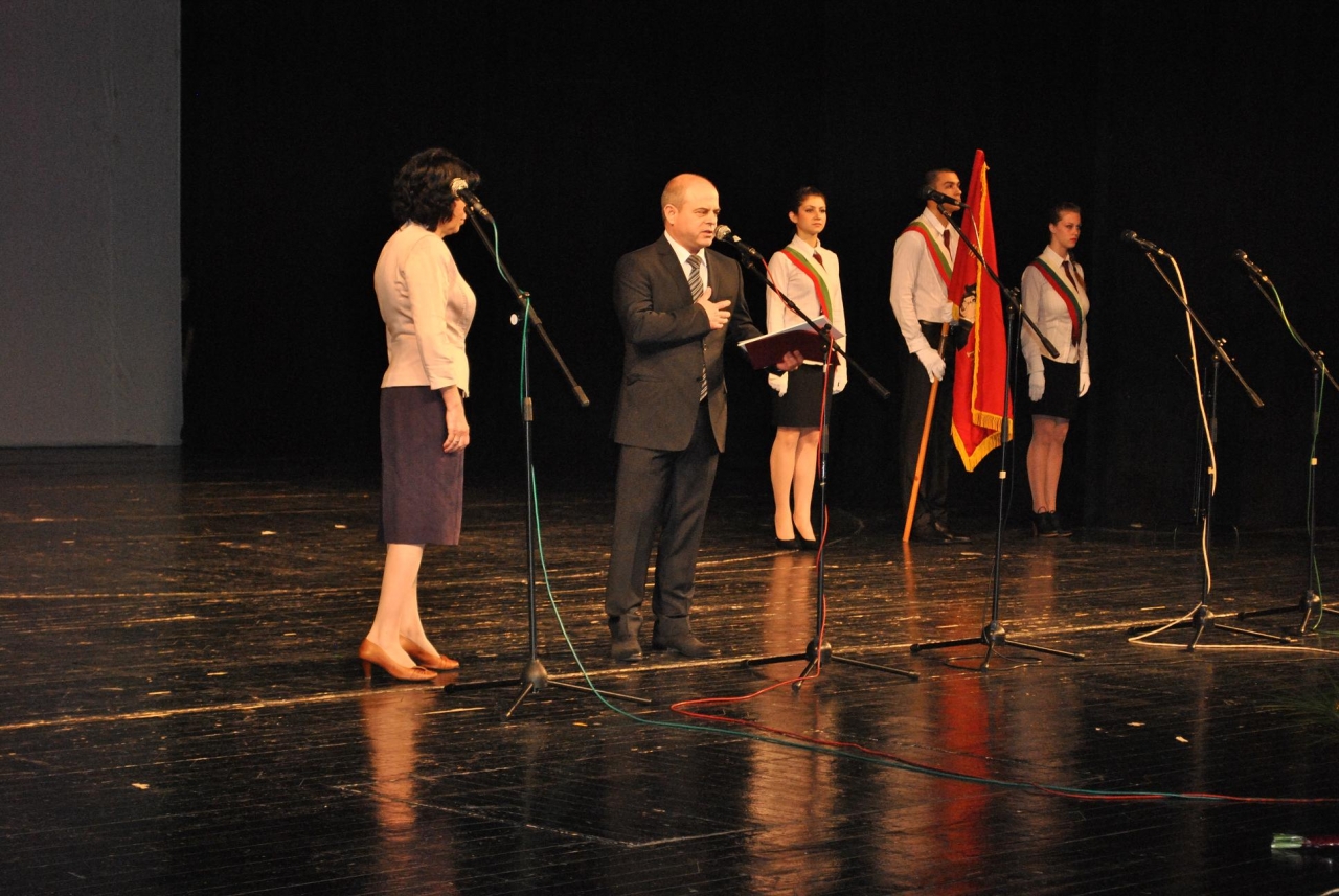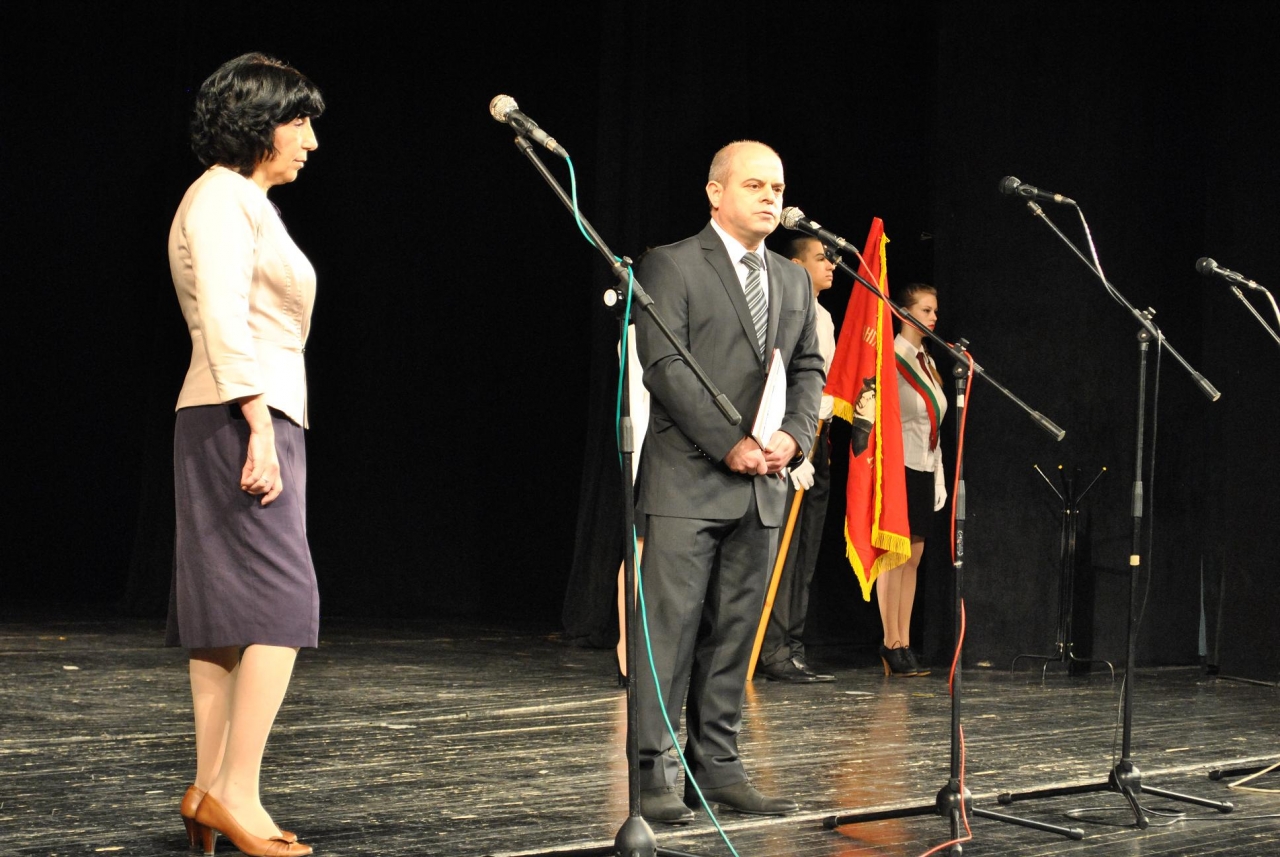 Приветствие към всички тях поднесе директорът Адриана Митова. Тя припомни накратко историята на училището и спомена поименно най-изтъкнатите сред бившите директори, преподаватели и бившите и настоящи възпитаници на гимназията.