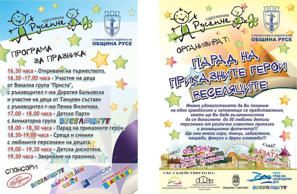На този ден ОДЦКИ-Русе ще проведе традиционно в 10:30 часа концерт пред Доходното здание, а в следобедните часове ще има много игри, изненади, песни и танци - в кв. „Дружба“, на паркинга пред „Кауфланд“.