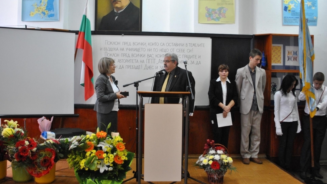 90 години от създаването на Професионалната гимназия по промишлени технологии „Атанас Цонев Буров“ – Русе бяха отбелязани с тържествена церемония в Аулата на училището днес. Сред гостите на честването бяха зам.-кметът Иван Григоров и началникът на отдел „Образование, младежки дейности и спорт“ Сашо Щерев.