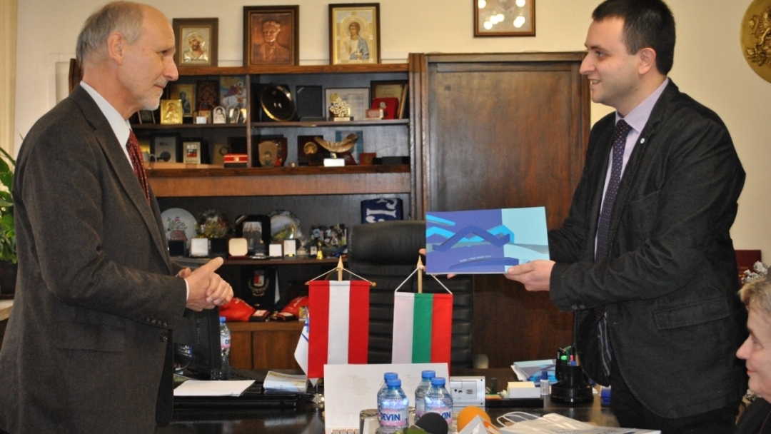 Още в началото на разговора, г-н Карапчански поднесе на Н.Пр. Герхард Райвегер изданието, с което Русе официално депозира кандидатурата си на 18 октомври (http://www.ruse2019.eu/pdf/). Г-н Карапчански отправи благодарност към австрийския дипломат за подкрепата му, както и затова, че Русе е сред основните домакини на Австрийските музикални седмици в България – важен акцент в кулртурния календар на града ни.