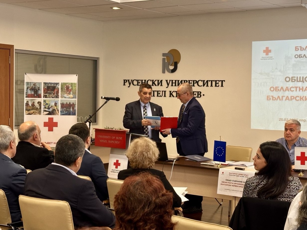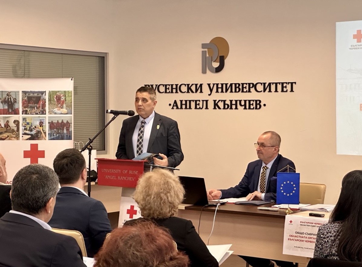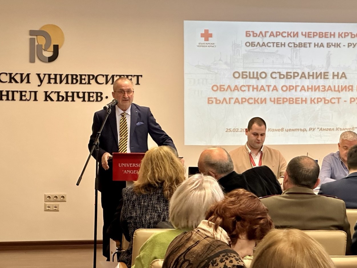 В Канев център към Русенския университет се проведе втората редовна сесия на 68-ото Общо събрание на Областната организация на Български Червен кръст – Русе, на което присъстваха представители на националното и местното ръководство, институции и доброволци. Форумът бе открит от председателя на Областната организация доц. д-р Стефко Бурджиев, а сред официалните гости бяха зам.-кметът на община Русе Димитър Недев, заместник-председателят на БЧК проф. Здравко Маринов, членът на Националния съвет Юлиян Страшимиров, заместник-генералният директор на БЧК д-р Славита Джамбазова, директорът на секретариата на областната структура Антоанета Ябанозова, председателят на общинската организация Алисе Муртезова и др.