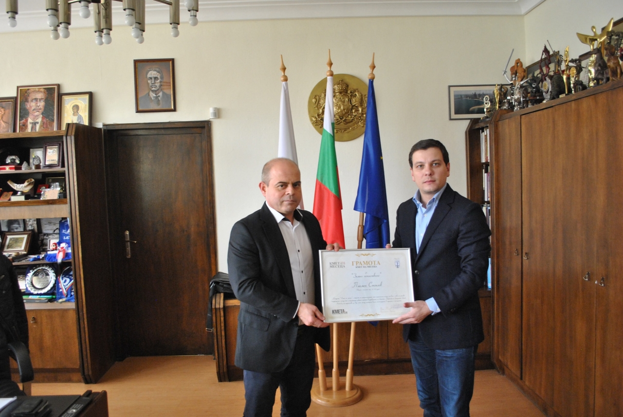 Изпълнителният директор на Kmeta.bg Боян Томов връчи официално наградата „Кмет на месеца“ на градоначалника на Русе Пламен Стоилов. Кметът спечели надпреварата през изминалия месец февруари.