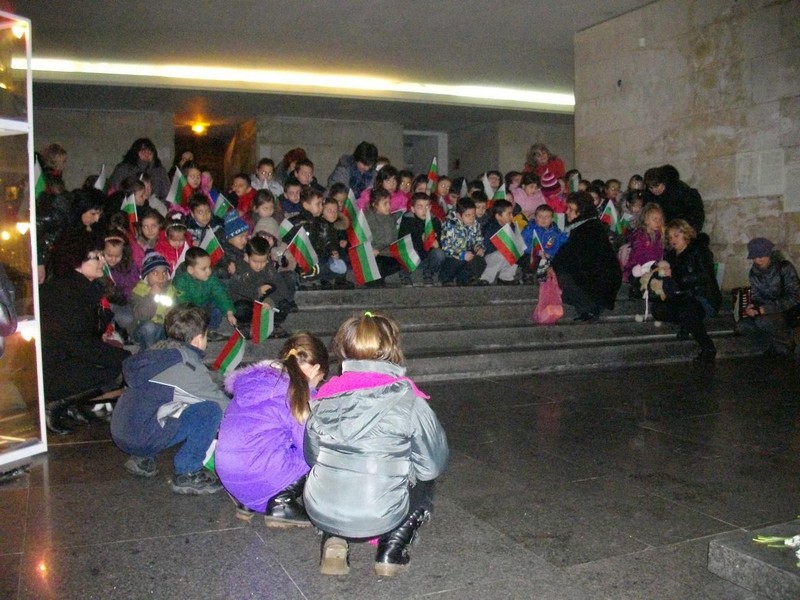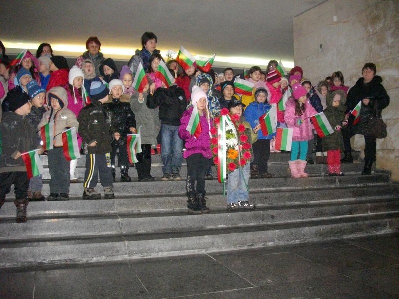 С инициативата ”Да съхраним огъня Български” ,децата от подготвителните групи на ОДЗ „Снежанка” отбелязаха Националния празник на България. Днес, бъдещите първокласници поднесат венци и цветя в знак на признателност към героите пред Паметника на Свободата и на Пантеона на възрожденците. В паметника-костница те изпълниха патриотични песни и стихове, подготвени специално за Националния празник.