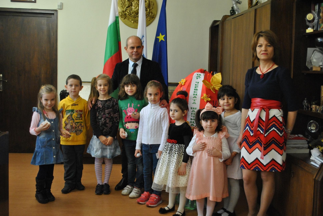 Кметът дари своите малки гости с шоколадови яйца и ги почерпи с бонбони. Той им благодари за вниманието и уважението и пожела на тях е техните семейства Светли Великденски празници.