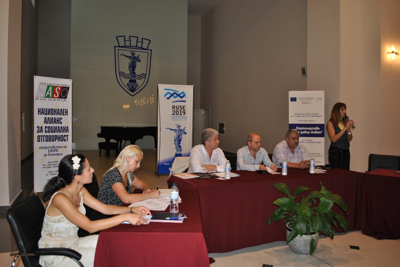В първия ден от двудневния регионален форум, в него се включиха доставчици и ползватели на социални услуги от Община Русе и Област Русе. Презентации направиха представители на НАСО, Областна администрация-Русе, Регионална дирекция за социално подпомагане-Русе и Община Русе. С тях бяха представени добри национални и международни практики при предоставянето на социалните услуги и приносът на партньорството между общините и доставчиците за повишаване качеството на услугите.