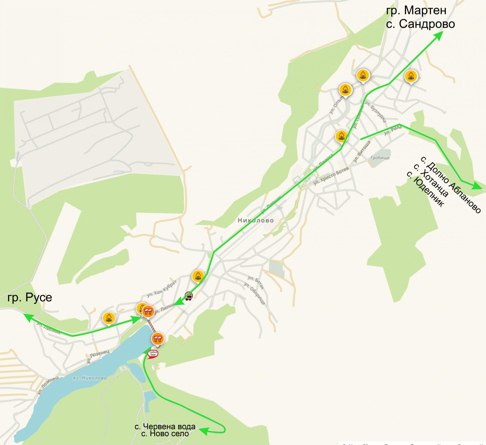 На картата са обозначени маршрутите и затворените участъци за по-лесна ориентация.