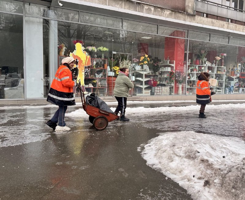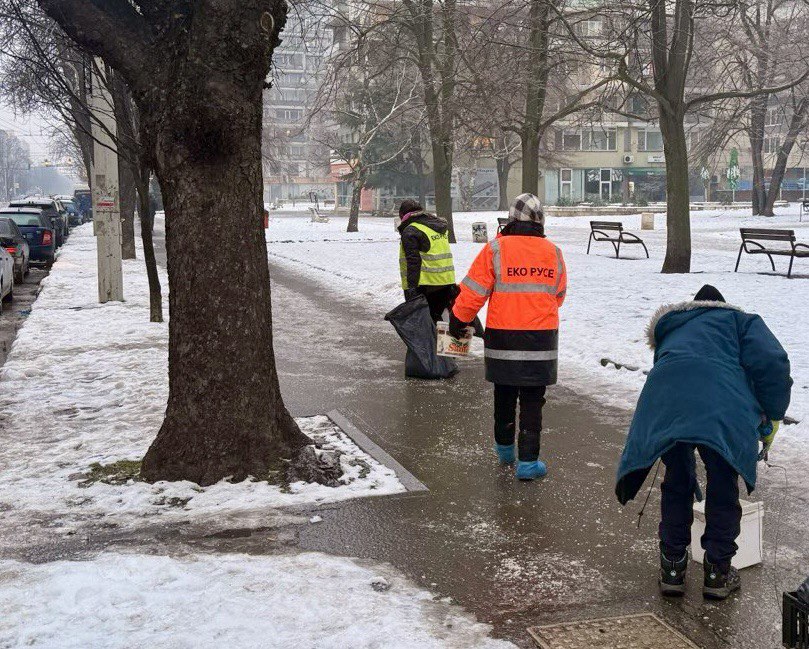 „Консорциум Еко Русе Груп“ ДЗЗД обработва улиците с 12 големи и 2 малки машини, а над 50 служители почистват и обработват тротоарите. Фирма „Берус“ е включила 4 машини по селищната пътна мрежа. Работници от ОП „Паркстрой“ опесъчават Централната градска част и основните пешеходни алеи.