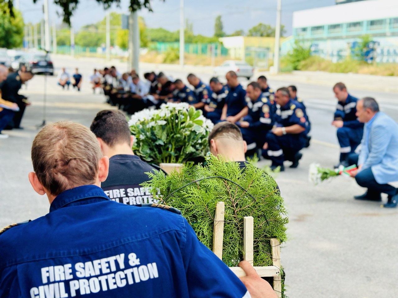 A ceremony in the courtyard of the First District Office in Ruse marked the professional holiday of Bulgarian firefighters and rescuers, part of the traditional "Fire Safety Week", which aims to raise awareness among citizens about the activities of firefighters and encourage continuity between generations. The event was held in front of the monument to the fallen firefighters, and was attended by the Director of the Regional Directorate "Fire Safety and Population Protection" - Ruse Commissioner Svetoslav Voychev, Deputy Mayor Zlatomira Stefanova, Regional Governor Dragomir Draganov, Deputy Director of the Regional Directorate of the Ministry of Internal Affairs Commissioner Alexander Kovachev, Director of the Secretariat of the Regional Council of the Bulgarian Red Cross in Ruse Antoaneta Yabanozova, current and former employees of the Regional Directorate "Fire Safety and Population Protection" - Ruse, etc.