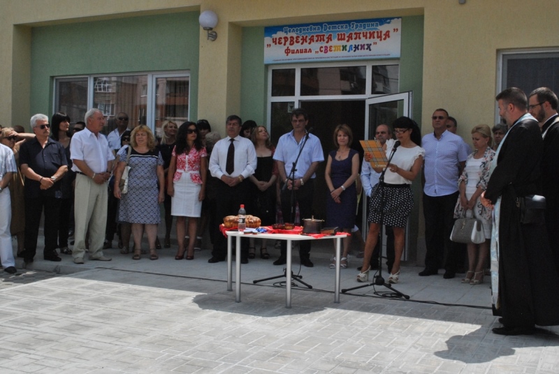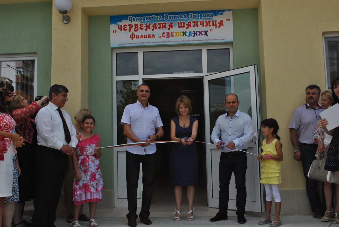 Официалното откриване на новопостроената детска градина по проект „СВЕТИЛНИК – социално включване чрез единодействие на терапевти и институции за леснодостъпни, нови, интегрирани консултации“ се състоя днес в кв. „Чародейка-юг“. На церемонията присъстваха народните представители от ГЕРБ г-жа Светлана Ангелова и г-н Пламен Нунев, кметът на Община Русе г-н Пламен Стоилов, заместник-кметът по хуманитарни дейности г-н Иван Григоров, заместник-кметът по комунални дейности г-н Свилен Иванов, областният управител Венцислав Калчев, председателят на Общински съвет – Русе засл. проф. Васил Пенчев, директори на дирекции и служители на Община Русе, директори на детски градини в Русе и граждани.