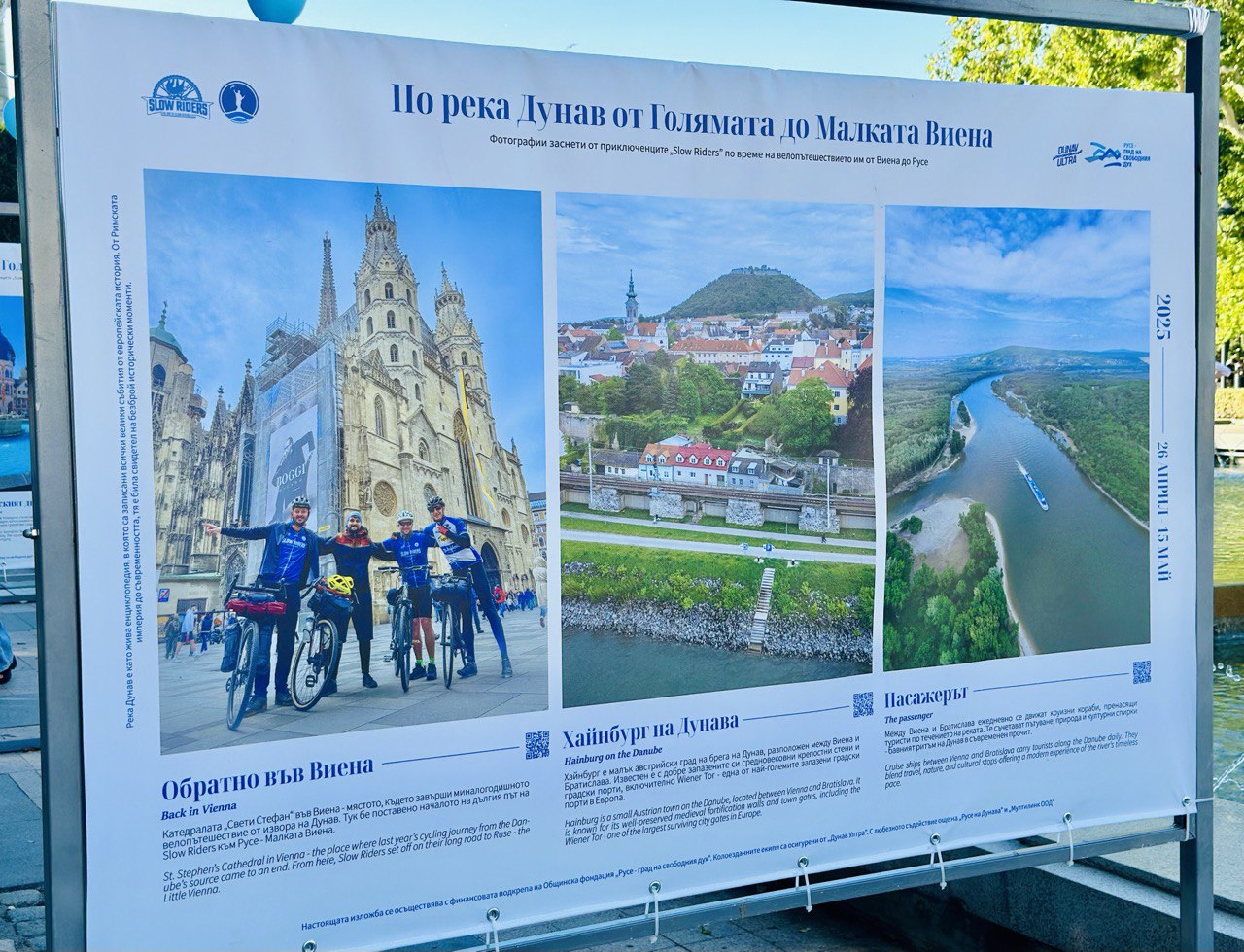 На площад „Свобода“ пред сградата на Община Русе бе открита фотоизложба под наслов „По река Дунав от Голямата до Малката Виена“. Експозицията беше представена атрактивно от колоездачите от приятелската задруга „Slow Riders“, които споделиха интересни моменти от своето велоприключение – пътуване от Виена до Русе, изцяло по течението на река Дунав.