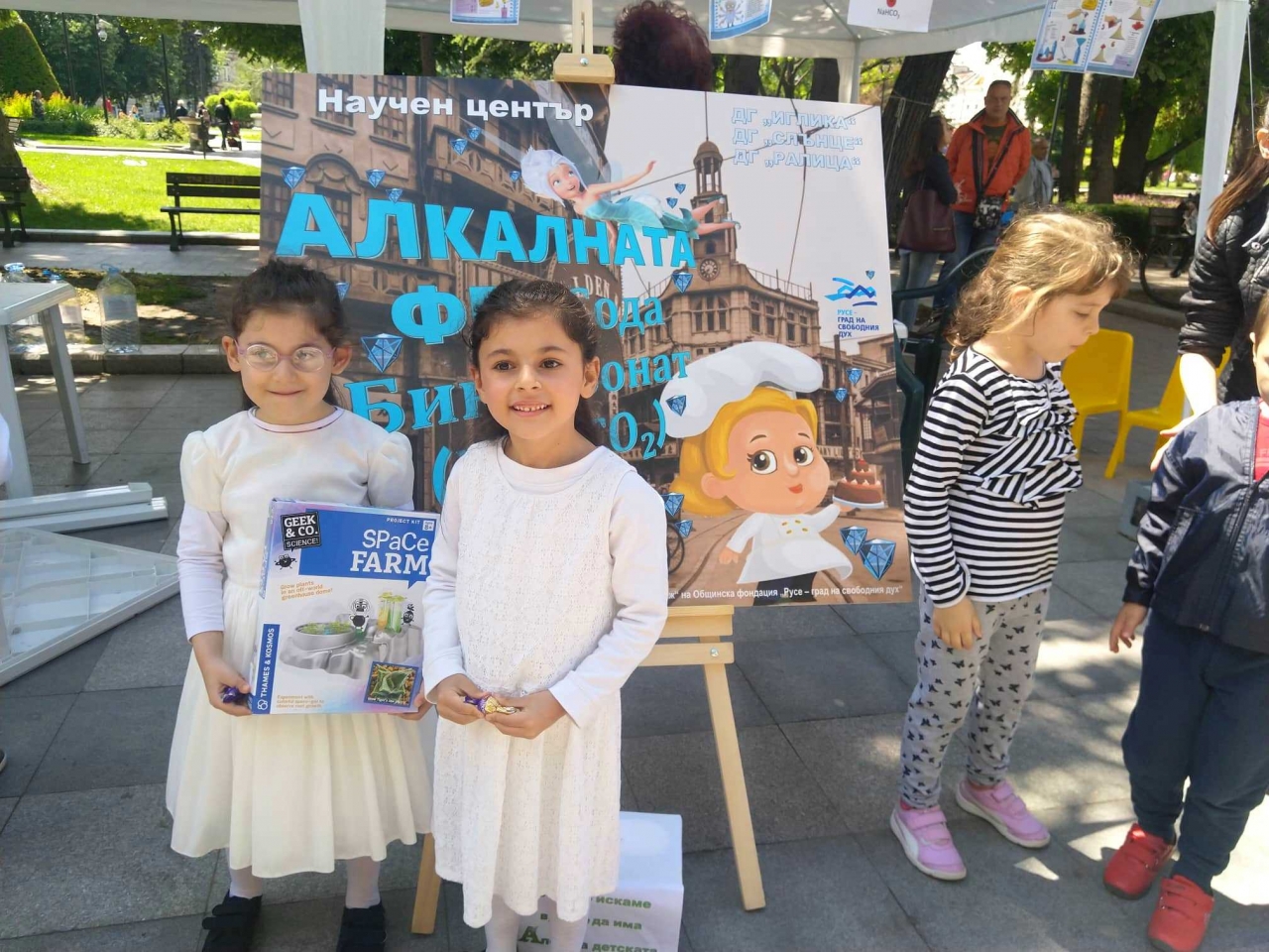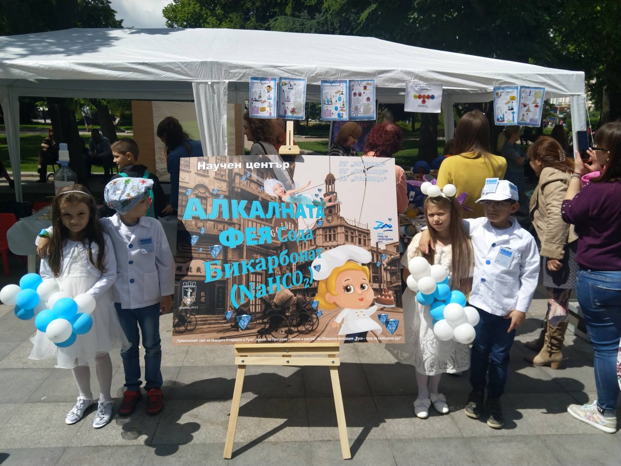 Деца, родители и педагози от 19 детски градини в Община Русе „построиха“ днес заедно Градче на знанието в центъра на града. Инициативата е част от проект „Удивителният свят на знаещите-6 годишни в Русе“, която се реализира от Детска градина „Снежанка“ по програма „Знание и растеж“, осъществявана от Фондация „Русе – град на свободния дух“, с подкрепата на Фондация „Еконт“.Науката беше представена през детските очи с научни центрове, лаборатории и арт-ателиета. Във всеки център бяха представени анимирани презентации и видео-спотове, изработени в детските градини с участието на педагози и деца. В пет големи шатри бяха разположени центрове: „Кафе“, „Вода“, „Шоколад“, „Сода“, „Брашно и сол“, като всеки от тях имаше специално обособени зони за научна работа, лаборатория, зона за новини и информация, зона за посетители, работилница и изложба. Чрез специално подготвени игри децата се запознаха с непопулярни факти, интересни експерименти и най-новите прозрения и научни доказателства за структурата, приложението и въздействието на тези елементи и продукти. Малките светила на науката поставиха акцент върху здравословните параметри и опазването на околната среда.„Удивителният свят на знаещите 6-годишни в Русе“ е иновативна концепция за поглед в задълбоченото научно познание чрез детските очи, фантазия и възможности.По своя мащаб и същност това е иновативна както за гр. Русе, така и за страната образователна и творческа изява с максимален обхват и въздействиес участието на всички 6-годишни деца от предучилищните групи на общинските детски градини на територията на Община Русе, в т. ч. и детските заведения в малките населени места.