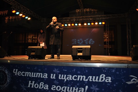 В последните минути на отминаващата 2015-та, празнуващите на площада бяха поздравени от кмета на Община Русе - Пламен Стоилов. Той определи 2015-а като една успешна за Русе година и благодари на русенци, че заедно са стигнали до тук. Точно преди да бъдат отброени последните секунди на 2015-а година, русенци чуха и словото на президента Росен Плевнелиев. По традиция, първото празнично хоро се изви под съпровода на оркестъра на Фолклорен танцов театър „Найден Киров”, след което празничният концерт продължи с хитовете на Лора Караджова. Водеща на новогодишната програма бе актрисата Ралица Константинова. Всички присъстващи на площада се насладиха на пищна заря в първите минути на новата година.