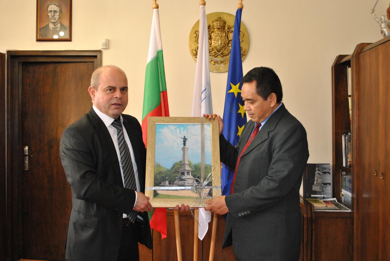„Основната цел на мисията ми е развитието на културните и икономически контакти между България и Индонезия“. Това заяви Н.Пр. Бунян Саптомо – извънреден и пълномощен посланик на Република Индонезия в България по време на срещата си днес с кмета на Община Русе Пламен Стоилов. На разговора присъстваха и съветникът по икономически и политически въпроси към дипломатическата мисия г-н Праново и зам.-кметът по европейско развитие Страхил Карапчански.