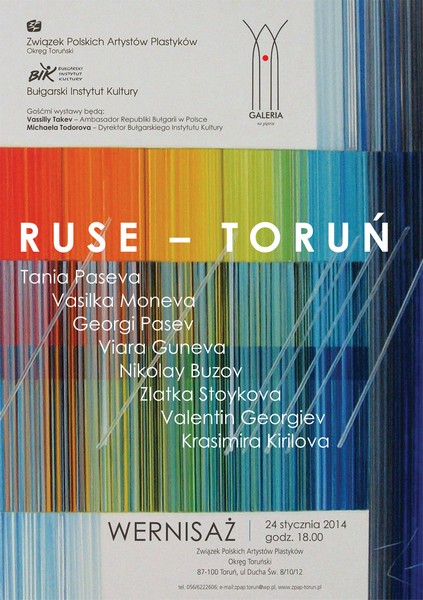 Изложба „Русе – Торун: пресечна точка Варшава” ще бъде открита в Торун, Полша, на 24 януари 2014 г. от 18 часа със заглавието „Русе – Торун: пресечна точка Торун”. Тя ще бъде представена от Посланик на РБългария в Полша, господин Василий Такев.