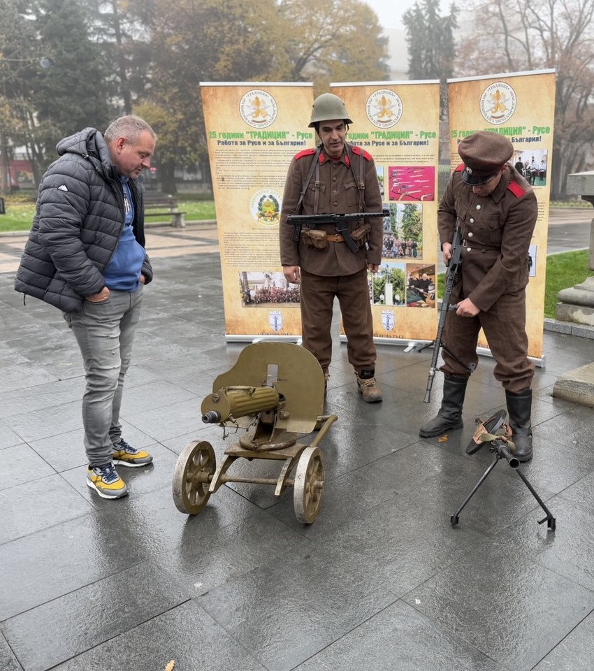 Русенският клон на Национално дружество „Традиция" отбеляза днес четвърт век от своето създаване с изложба пред Паметника на Свободата. Събитието е част от проекта „Дружество „Традиция“ – 25 години работа за Русе и България“, реализиран по програма „Култура“ на Община Русе. Участниците представиха богата експозиция от оръжия, униформи и оборудване от епохата на българските борби за национално освобождение и обединение. Експонатите показват най-значимите моменти от дейността на организацията – от образователни програми и исторически реконструкции до участия в национални и местни патриотични инициативи.