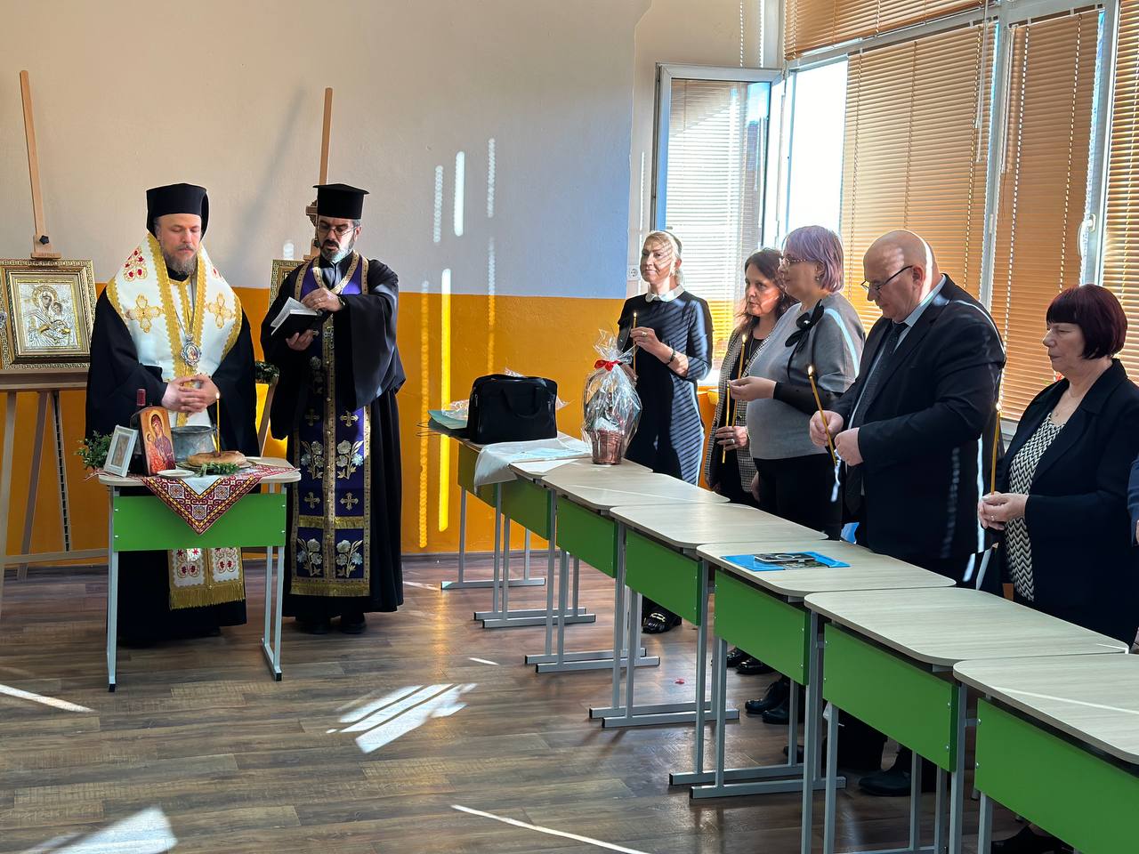 С водосвет за здраве, изпълнен от главиницкия епископ Макарий и отец Светослав Георгиев, бе открит днес кабинет по религия в русенското ОУ „Олимпи Панов“. Офицален гост на събитието бе заместник-кметът Енчо Енчев, който отправи поздравления от името на кмета Пенчо Милков към целия педагогически екип за труда и отдадеността, благодарение на които това начинание стана възможно.