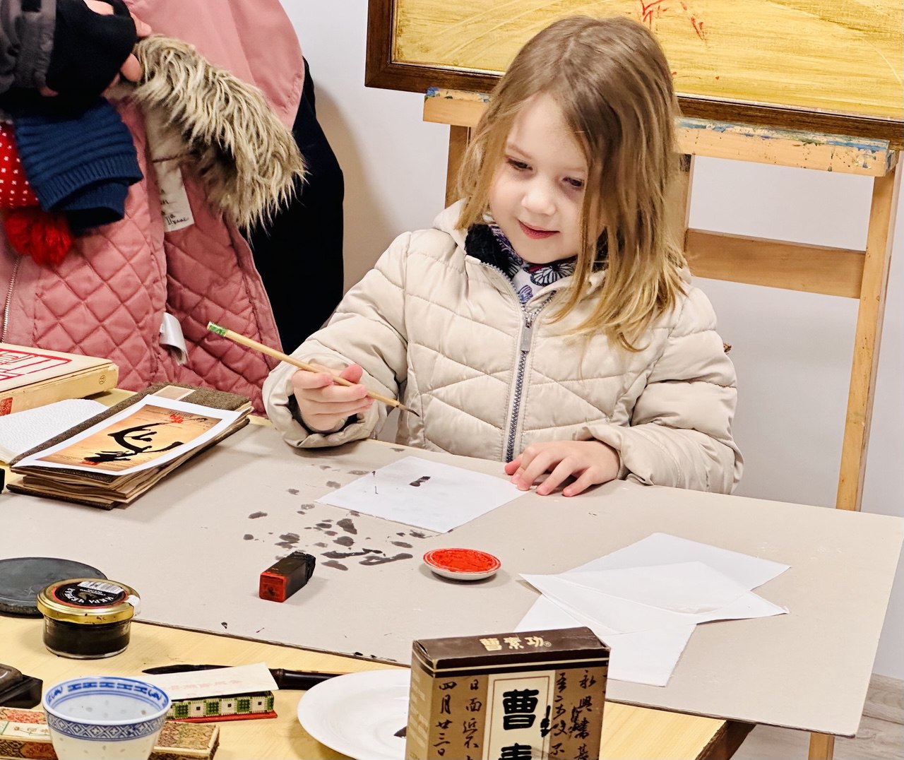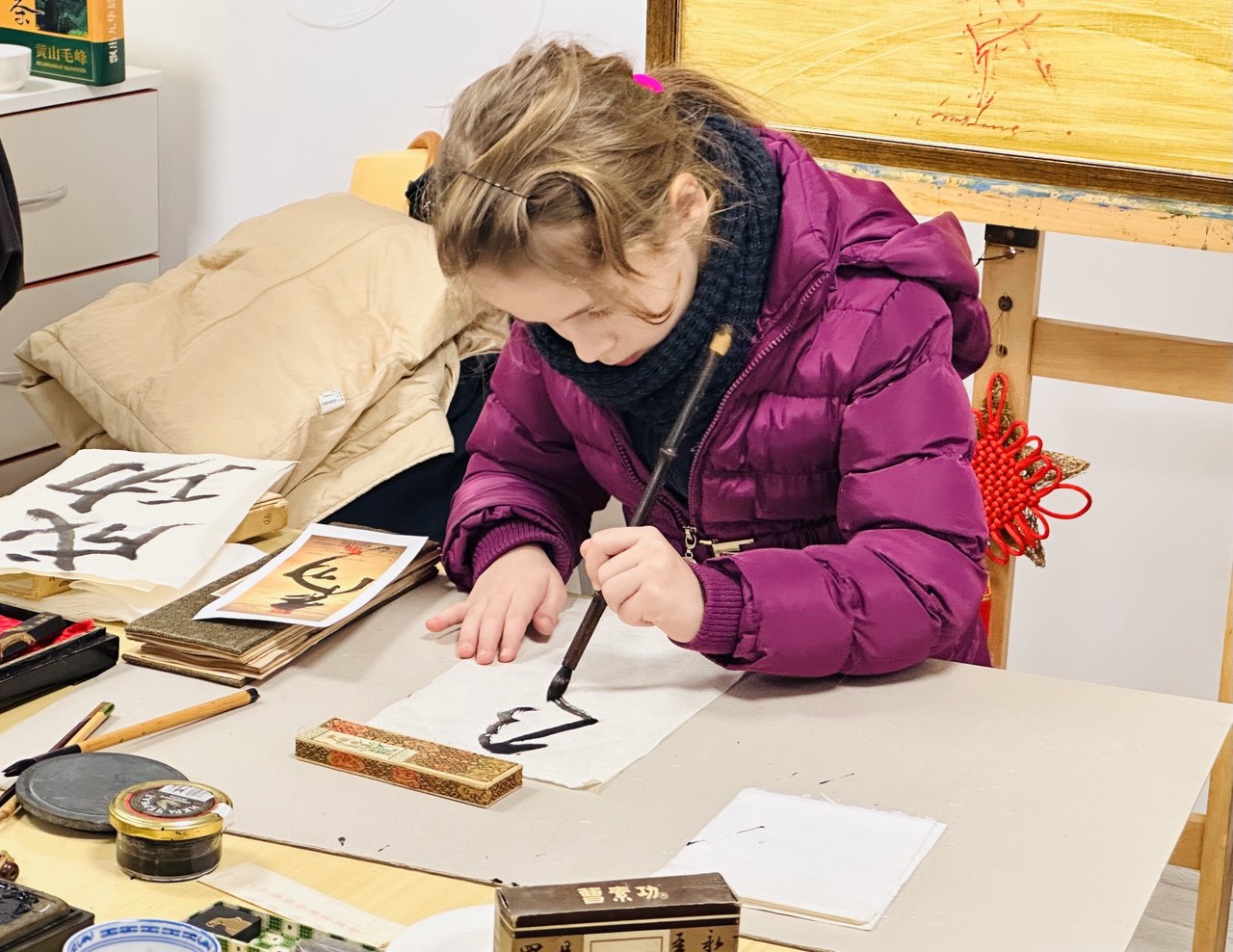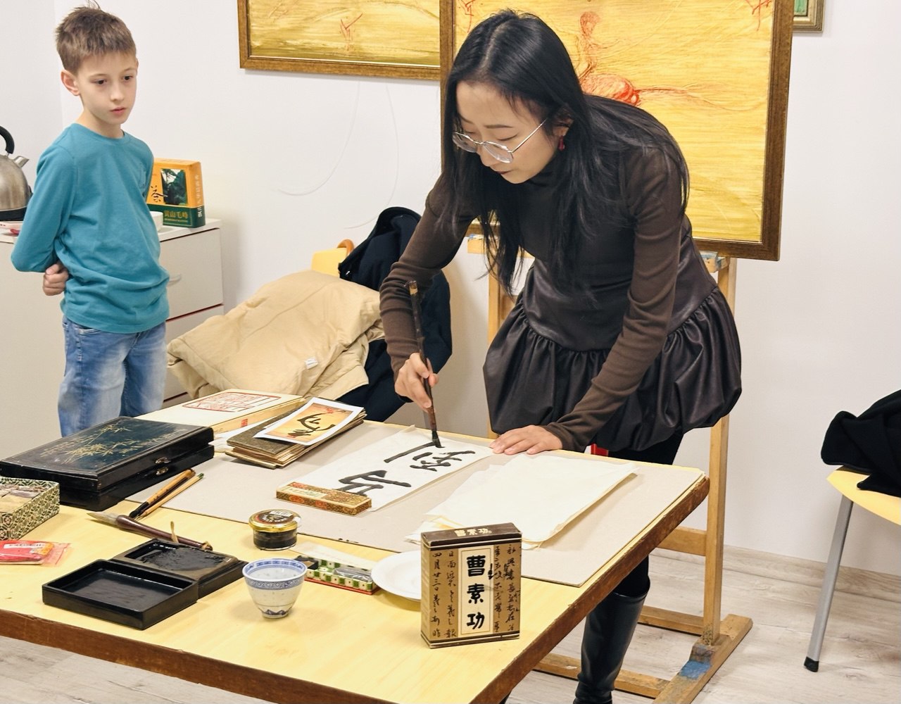 Специален акцент при откриването на изложбата бе калиграфският експеримент върху китайския йероглиф „МА“ – кон, представен от китайски гости. Те демонстрираха традиционни калиграфски техники, а в работилницата се включиха и деца от школата, както и част от посетителите, превръщайки събитието в жив културен диалог между традиция и изкуство.