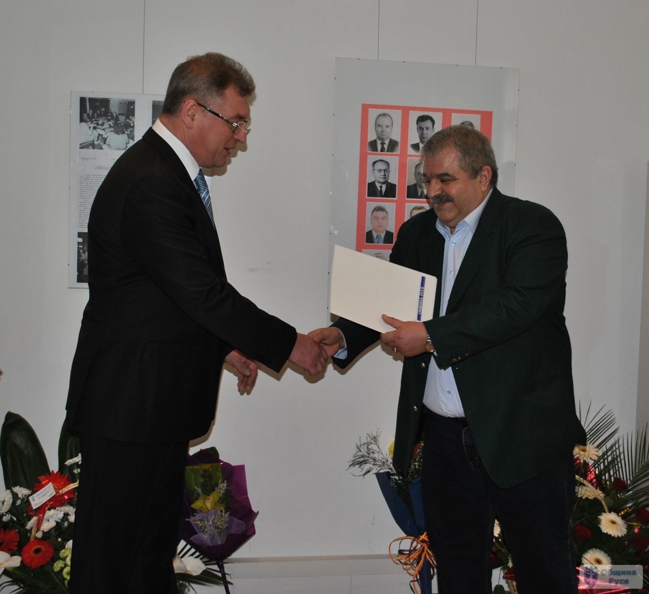 Поздравителни адреси от кмета Пламен Стоилов и от председателя на Общински съвет – Русе засл.проф. Васил Пенчев бяха връчени днес на Генералния консул на Руската федерация в Русе Владимир Климанов. Това стана на официалното откриване на изложбата „Генералното консулство на Русия в Русе от момента на учредяването му до днес“. На него присъстваха и Н.В.Пр. Русенският митрополит Неофит, зам.обл.управител Веско Маринов и кметове на общини от областта.