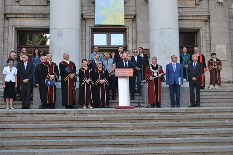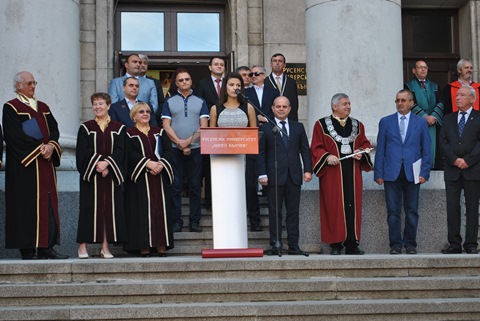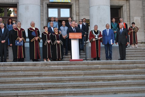 Кметът на Община Русе г-н Пламен Стоилов поздрави студентите, пожела им на добър часи сподели, че винаги е бил щастлив да е сред колектива на Русенския университет. „Тази година откриването на учебната година има друг заряд, защото съвпада с един впечатляващ юбилей – 70 години, една впечатляваща и достойна за уважение цифра“, допълни г-н Стоилов. Кметът сподели и изрази гордост от това, че Русенският университет е водещ не само в Б-я, но и в региона, благодарение на изцяло преобразена инфраструктура за спорт, културния дом - Канев център, както и санираните общежития.