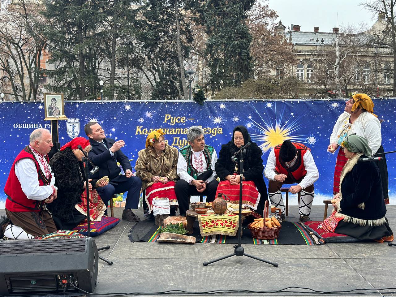 С богата фолклорна програма и пресъздаване на автентични български обичаи в Коледното градче на пл. „Свобода“ днес бе отбелязано традиционното коледуване, организирано от Община Русе. Коледарите бяха посрещнати от кмета Пенчо Милков, който отправи своите благопожелания към русенци. В празничното събитие участваха самодейци от читалище „Св. св. Кирил и Методий – 1924“ от кв. „Средна кула“ и Народно читалище „Пробуда – 1901“ от с. Николово, които върнаха публиката в началото на XX век с обичая „Бъдни вечер“.