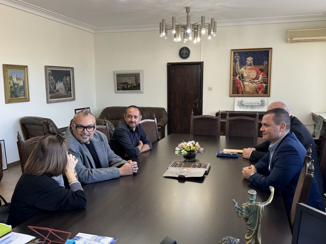 Kметът на община Русе Пенчо Милков се срещна днес с испанския режисьор и драматург Хосе Варлета по повод откриването на Международния театрален фестивал „Есенни театрални срещи в Русе“ 2025. В разговорите участваха още зам.-кметът Енчо Енчев и директорът на Драматичния театър „Сава Огнянов“ Боян Иванов. Присъстващите обсъдиха ролята на театъра в контекста на съвременните предизвикателства, както и значението му като пазител на културната памет на града.