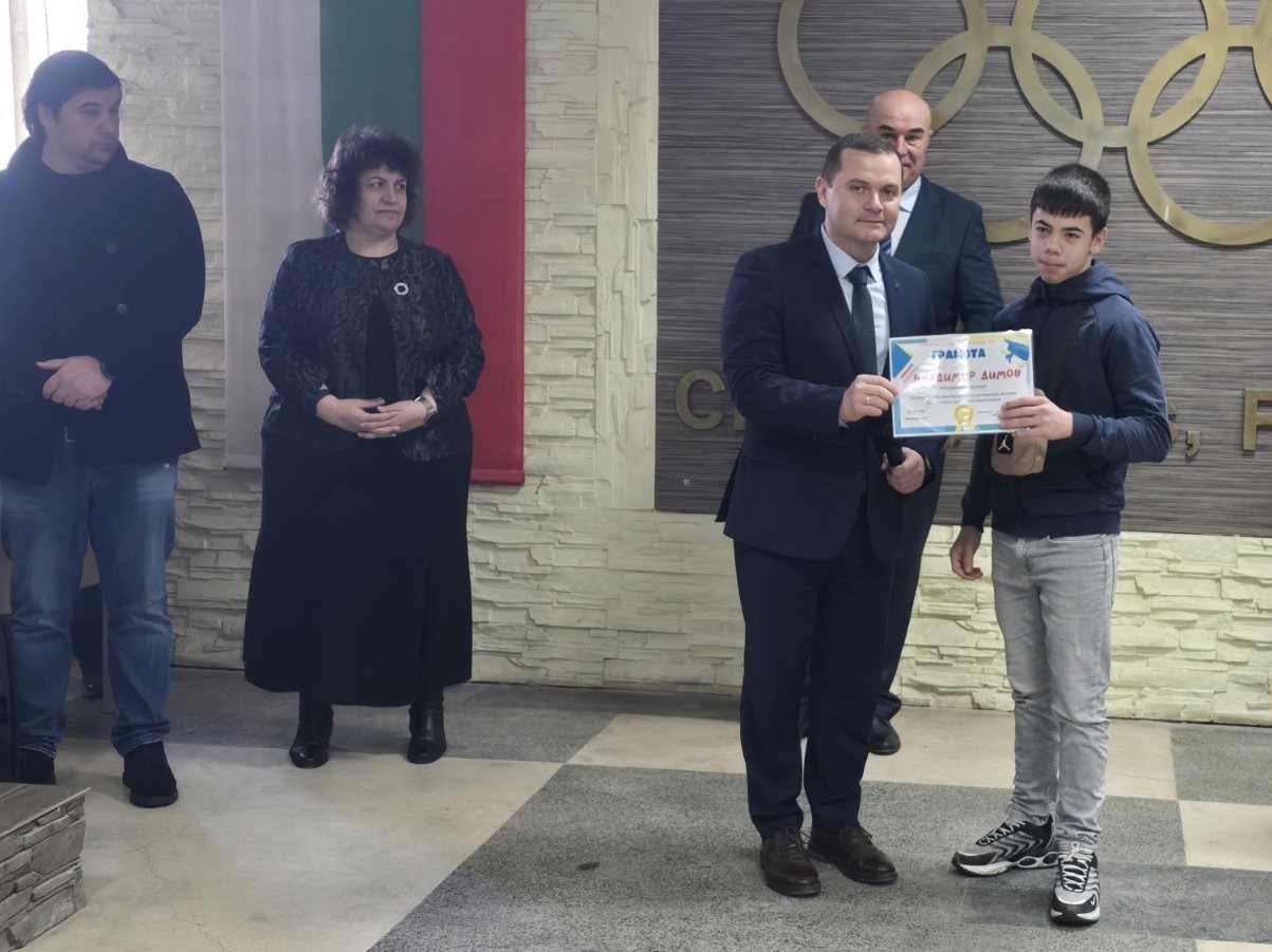 Кметът Пенчо Милков, д-р Росица Георгиева, Лачезар Иванов и директорът на Спортното училище Евгени Недев наградиха изявени ученици с постижения в учението и спорта.