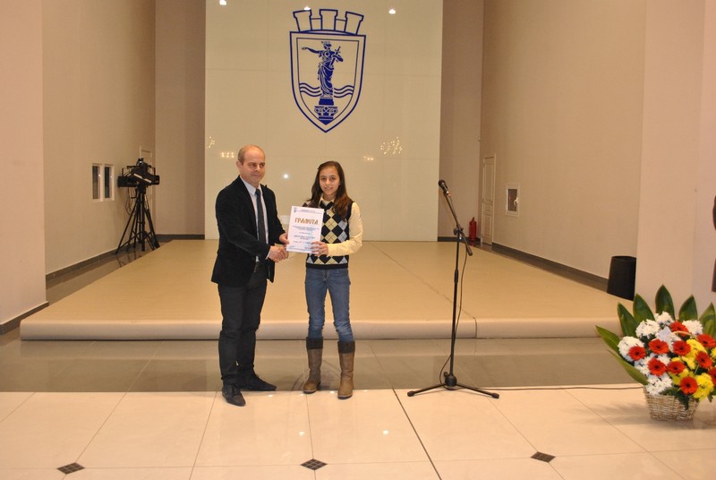 Кметът връчи грамоти на 33-ма ученици, отличени с едногодишни стипендии в размер на 135лв. месечно, възпитаници на МГ „Баба Тонка”, АГ „Гео Милев”, СОУ „Христо Ботев”, ОУ „Братя Миладинови”, СОУ „Васил Левски”, СОУ „Възраждане”, СОУЕЕ „Св. Константин-Кирил Философ”, СОУПНЕ „Фридрих Шилер”, ОУ „Иван Вазов”, ОУ „Любен Каравелов” и ОУ „Ангел Кънчев”.