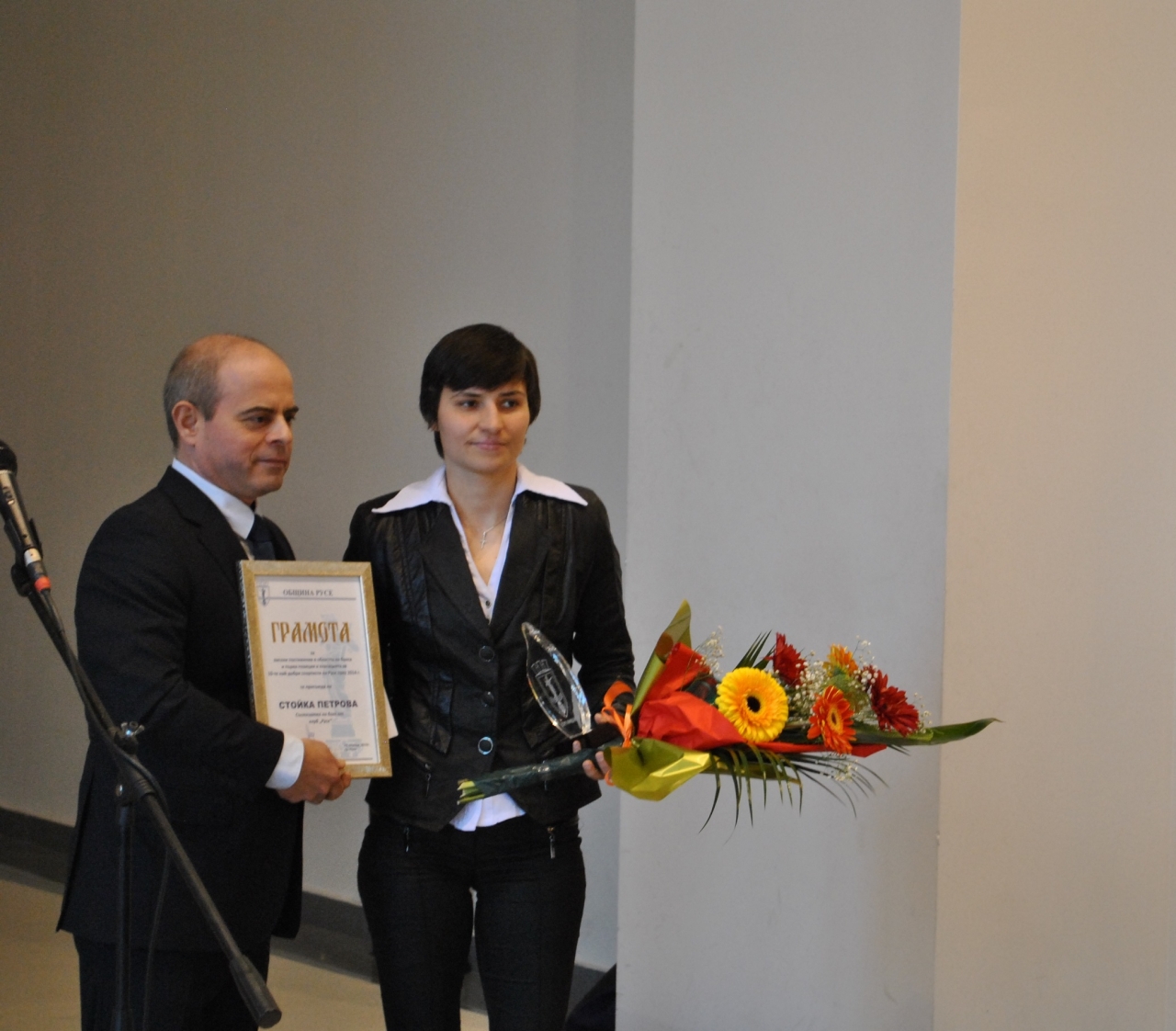 - Фаворитът в тази класация събрала 146 точки е Стойка Петрова от боксов клуб "Русе". Тя е европейска шампионка за жени, пета на световното първенство, носителка на купа "Странджата", шампионка на международни турнири през годината в Турция, Доминиканска република, Мароко, шампионка на купа "България".Наградата връчи кметът Пламен Стоилов.