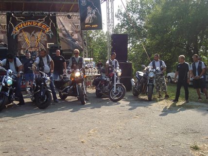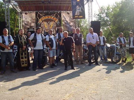 Кметът на Община Русе Пламен Стоилов приветства мотористите, присъстващи на националния мотосъбор, организиран от мотоклуб „The Тhunders“. Събитието е в памет на Ивайло Андреев.