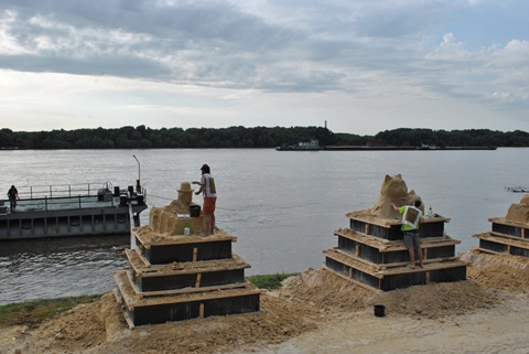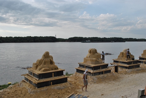 613 тона пясъкса на площадката на Международен фестивал на пясъчни скулптури, Русе'2015., на кея в Русе. В екипа с техника и работници участват общинските предприятия "Русе арт", "Паркстрой" и "Комунални дейности".