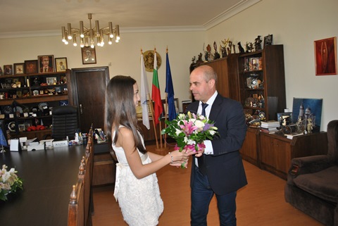 Г-н Стоилов приветства 12-годишната ученичка за високите постижения и й благодари, че точно на първия учебен ден тя избра да сподели своя празник с русенския градоначалник. „Не знам дали осъзнаваш колко поводи за гордост донесе на Русе. Вярвам, че за в бъдеще те очакват още много успехи и съм уверен, че ще се представиш достойно на предстоящото голямо изпитание на 21 ноември. Вярвам, че можеш да победиш. Разчитай на пълната подкрепа не само на Общината, но и на всички граждани, защото ти си един от поводите да се гордеем, че сме русенци. Живеем в един уникален град, чието най-голямо богатство сте вие – нашите деца“, заяви Пламен Стоилов.