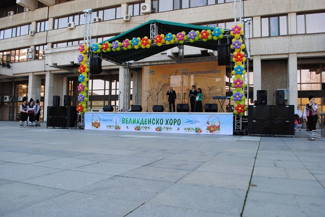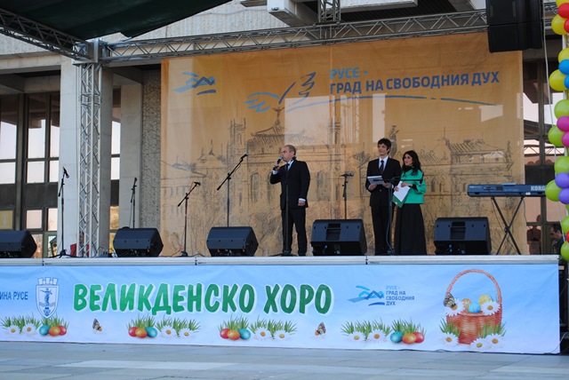 Кметът Пламен Стоилов даде старт на днешния празник - традиционното “Великденско хоро“ пред сградата на Общината. Организатори на събитието са Община Русе и Фолклорен танцов театър „Найден Киров“.