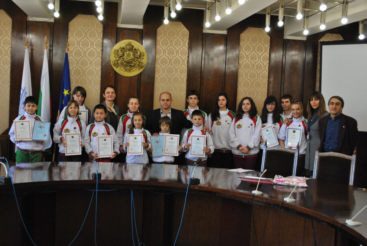 Състезателите от спортен клуб „Калагия“ гостуваха днес на кмета на Община Русе Пламен Стоилов. На срещатаприсъстваха и директорът на Дирекция „Здравни и социални дейности“ Мариела Личева и началникът на общинския отдел „Образование, младежки дейности и спорт“ Сашо Щерев.