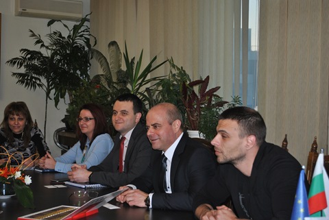 На срещата присъстваха г-жа Лариса Манастърли – директор на банката за България, Илия Кардашлиев и Иван Церовски – представители на банката, зам.-кметът по европейски въпроси д-р Страхил Карапчански, секретарят на Общината г-н Димитър Генков, както и други членове на екипа на г-н Стоилов.