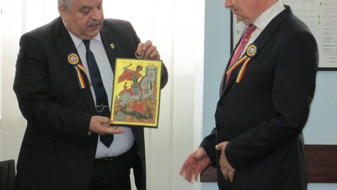 Като подарък, заместник-кметът Григоров поднесе на Николае Барбу икона на Свети Георги Победоносец, който е закрилник и на двата града – Русе и Гюргево, както и бутилка червено вино от русенска изба.