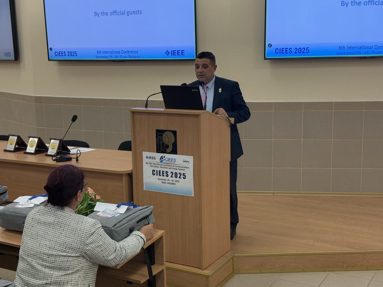 Русенският университет „Ангел Кънчев" е домакин на 6-ата Международна научна конференция IEEE International Conference on Communications, Information, Electronic and Energy Systems (CIEES 2025). Форумът започна днес в зала „Сименс“ и продължава до 28 ноември. Той събра над 220 учени и специалисти от цял свят, които ще се включат в 9 присъствени и 17 онлайн секции.