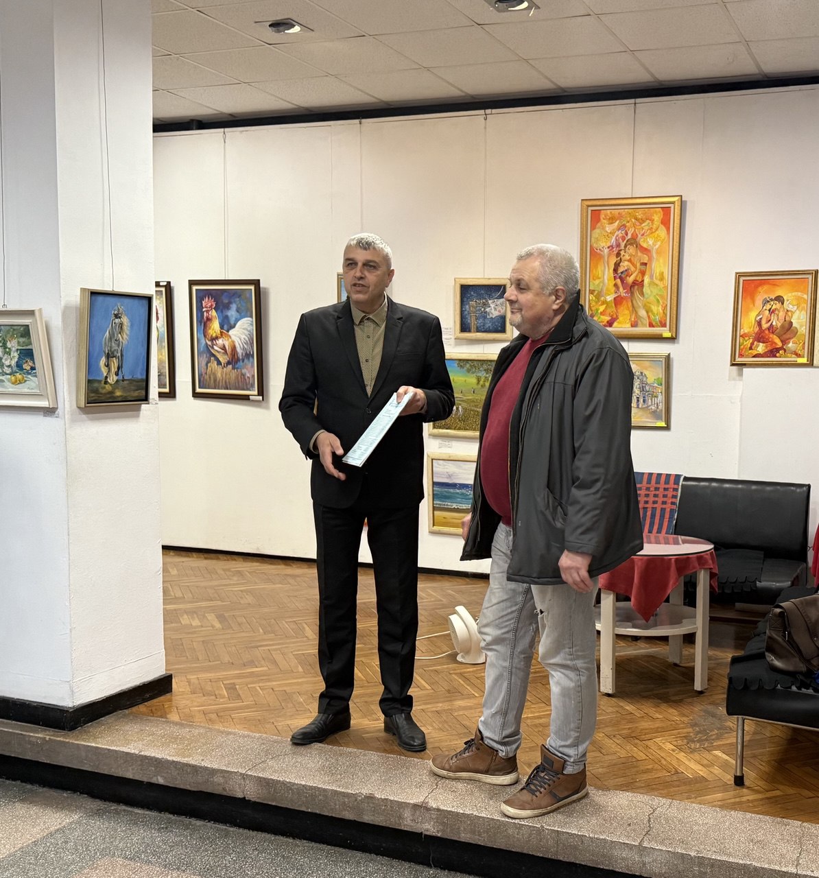Експозицията бе открита от директора на дирекция „Образование и култура“ в Община Русе Цветослав Димитров. В приветствието си той подчерта, че богатото творческо многообразие е доказателство за силата на местната художествена общност и за неизчерпаемата способност на изкуството да улавя духа на времето и да го превръща в красота. „В духа на зимните празници изложбата ни напомня за значението на културата в ежедневието и за силата на изкуството да обединява хората около красивото и да вдъхва надежда за бъдещето. Убеден съм, че всяко произведение ще разкаже своята история и ще остави траен отпечатък в сърцата на посетителите“, заяви той.
