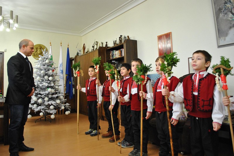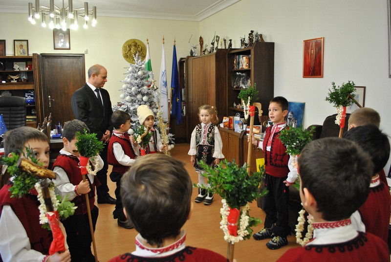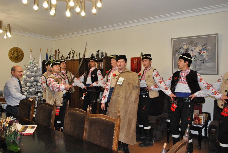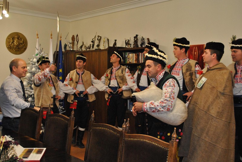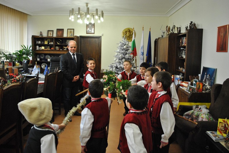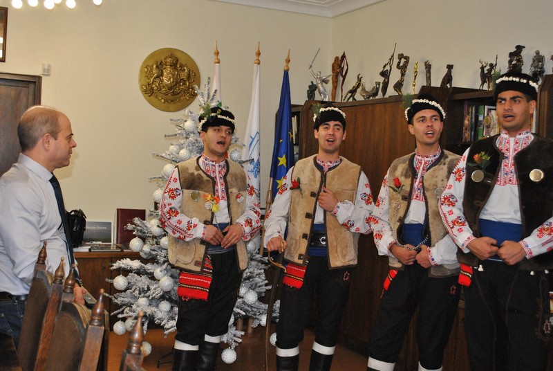 В края на работния ден вчера, коледари от Фолклорен ансамбъл „Българе“, предвождани от ръководителя на формацията Христо Димитров, гостуваха на кмета Пламен Стоилов. Те изпяха традиционни коледни песни и отправиха коледни наричания.