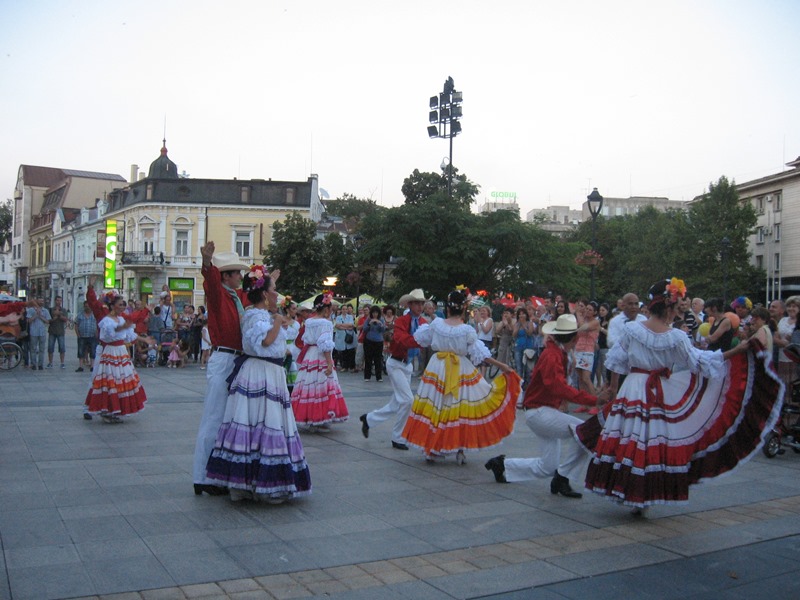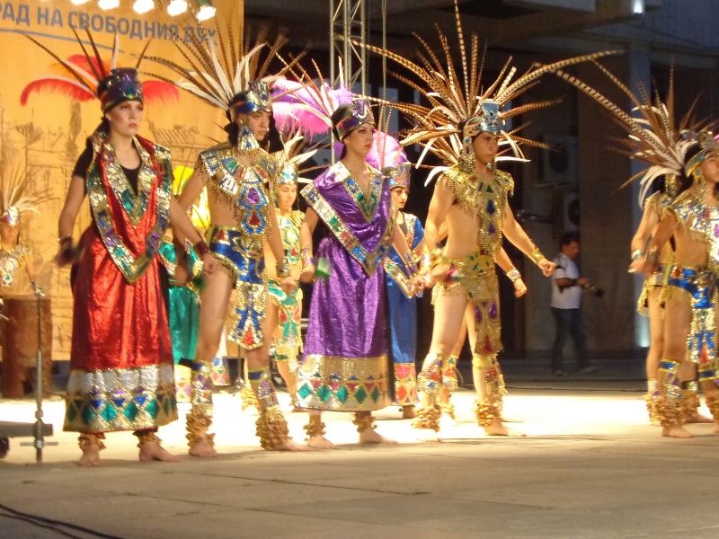 На сцената пред Общината те изненадаха зрителите, преобразени с атрактивни костюми на ацтеки. Традиционни мексикански танци, латино ритми, изпълнени на живо от оркестър мариачи бяха само част от завладяващата атмосфера на представлението. С танци и музика, балет „Куаитл” показа различни обичаи от мексиканската култура. Танцьорите разиграха и сцена с традиционни хладни оръжия.