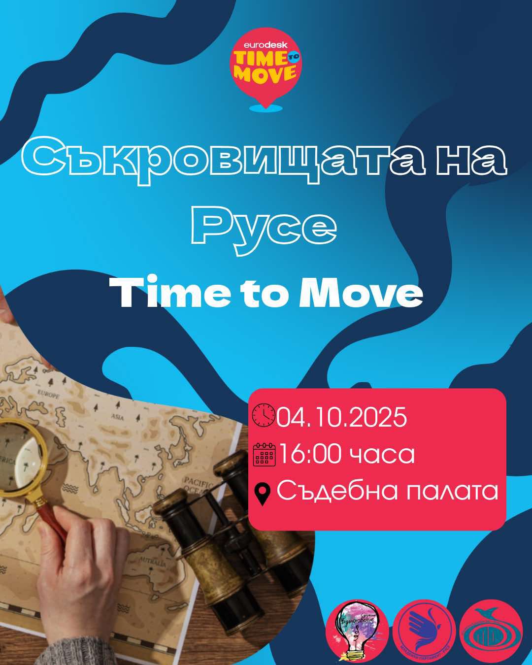На 4 октомври от 16 ч. пред Съдебната палата в Русе ще се проведе интерактивната игра „Съкровищата на Русе“, част от кампанията Time to Move на мрежата Eurodesk.