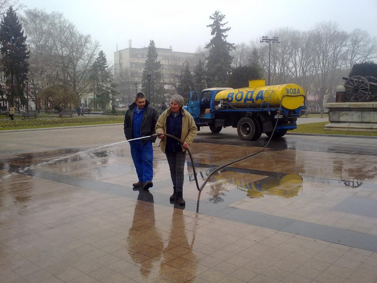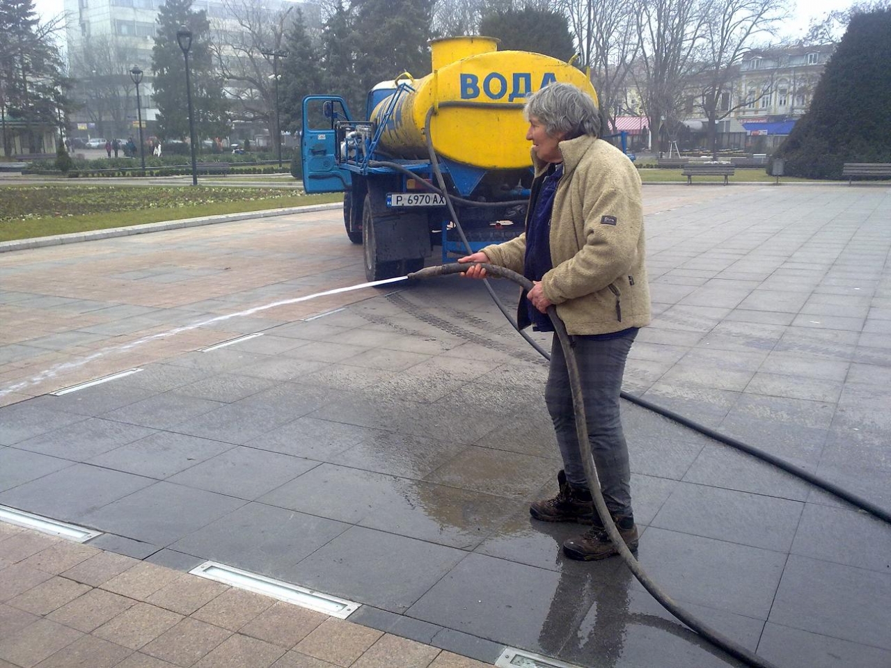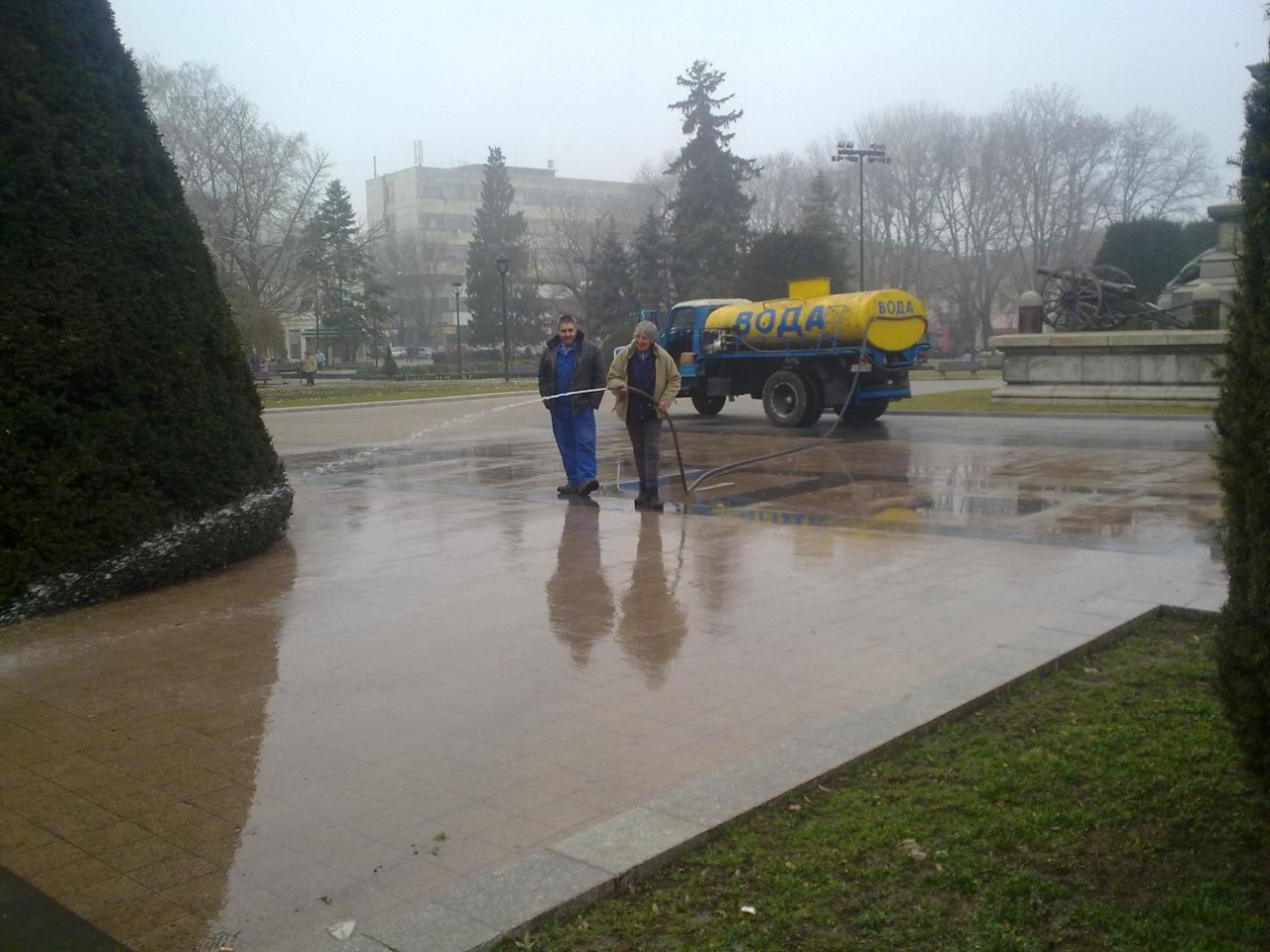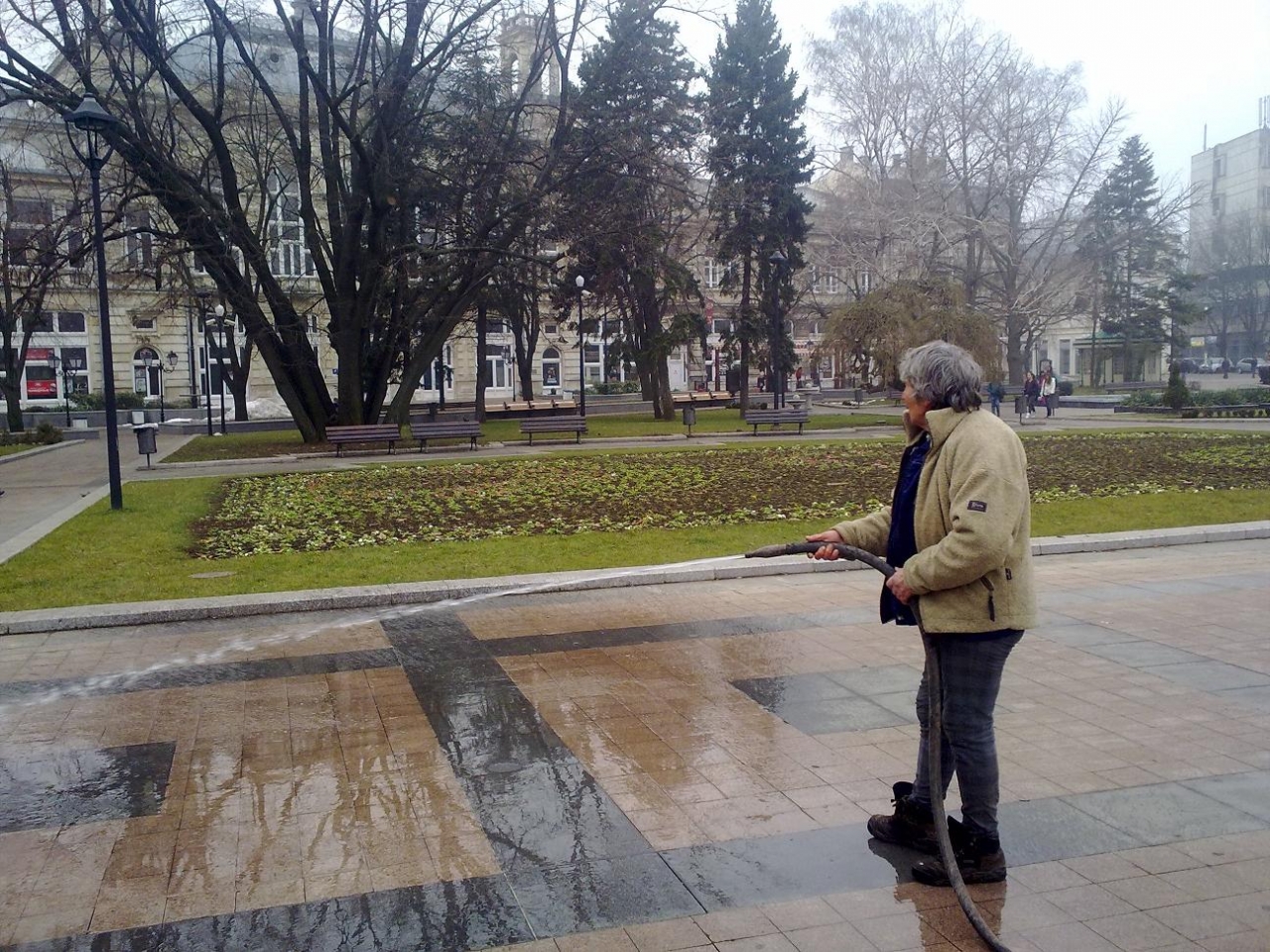 От „Паркстрой“ ЕООД вече са се погрижили за измиването на Централния площад, както и на пространствата край Пантеона на възрожденците и Паметника на Альоша.