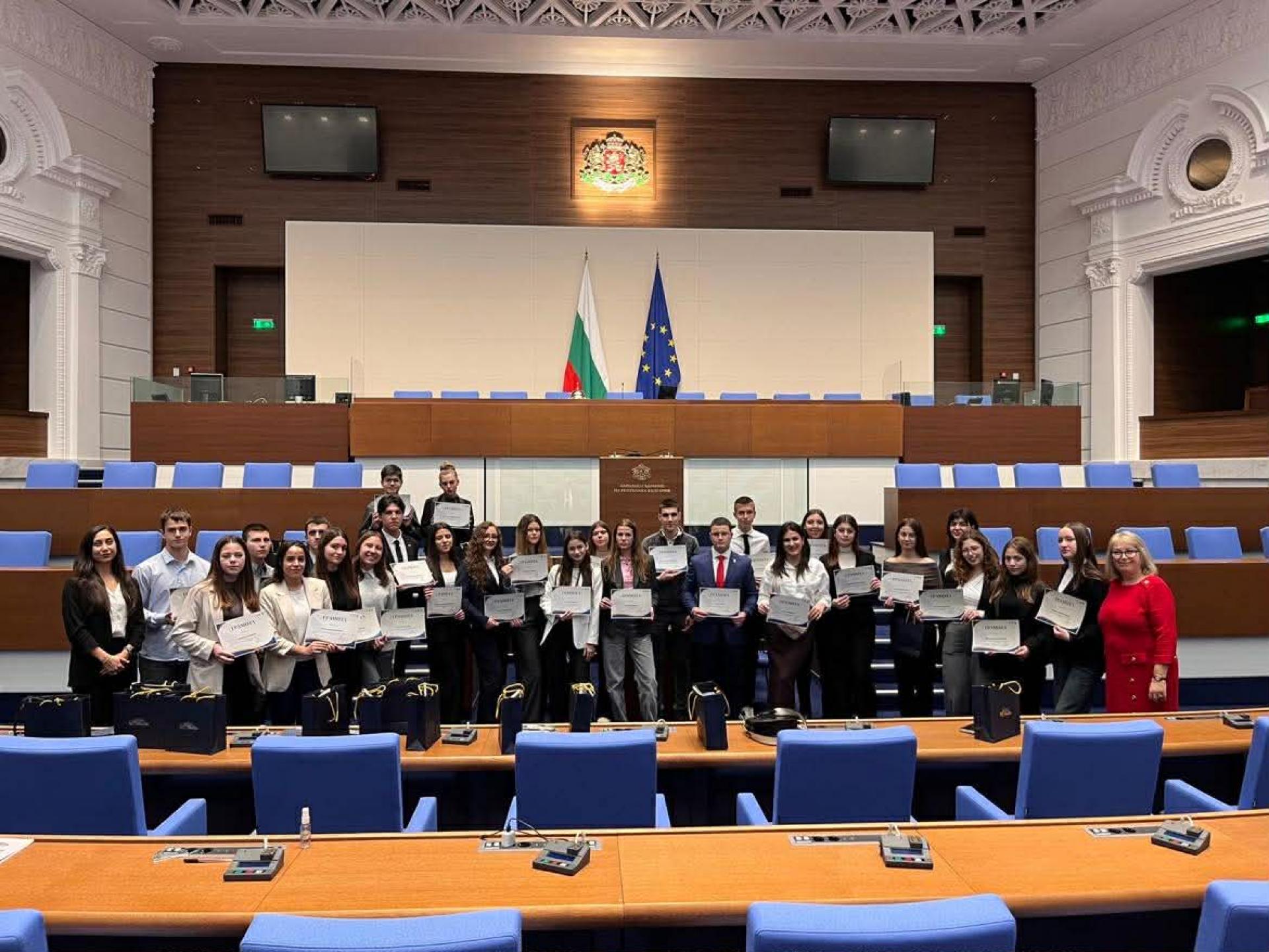 След дискусията домакините показаха на участниците Пленарната зала, където младежите имаха възможност да видят къде заседават народните представители и да се снимат на парламентарната трибуна. В края на посещението директорът на Общинския младежки дом Красимира Николаева връчи официално грамоти на всички участници.