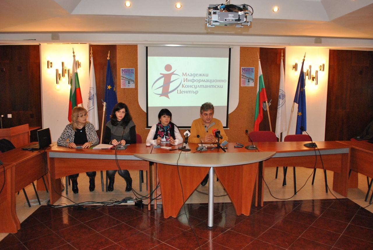Днес се проведе пресконференция на Младежки информационно - консултантски център на област Русе. На срещата присъстваха директорът на дирекция „Образование и култура“ Ирена Петрова, Мариян Савов – част от екипа на проекта, обучител и говорител, Теодора Траянова и Красимира Николаева – също част от екипа на проекта.