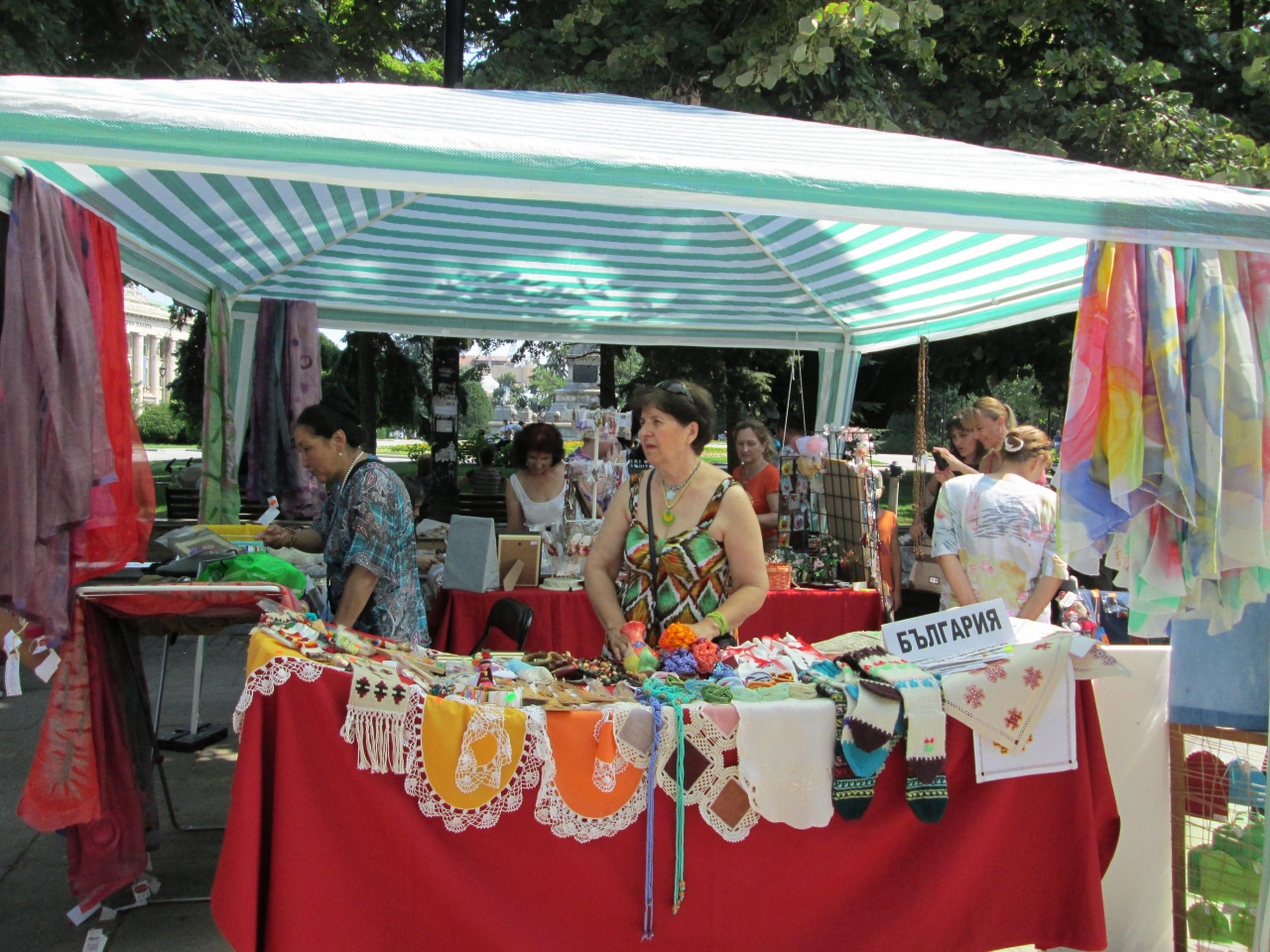 На щандове, разположени пред Доходното здание, са изложени над 1000 артикула, изработени от надомници от България, Киргизтан, Армения, Турция, Македония и Албания. Сред тях са ръчно рисувани шалове, гоблени, сувенири, бижута и др. Фестивалът ще продължи до 27 юни включително.