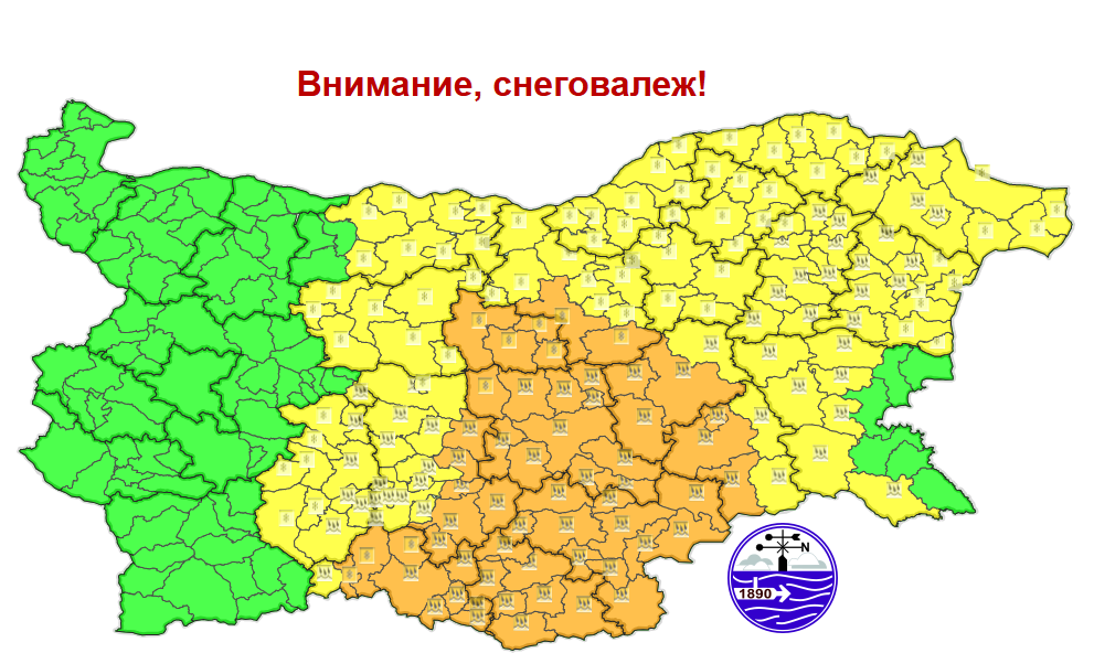 По данни на Националния институт по метеорология и хидрология за 21 февруари (събота) е обявен жълт код за опасно време поради очаквани значителни валежи от сняг, поледици и навявания. По информация на синоптиците още тази вечер ще започнат валежи от дъжд, които през нощта ще обхванат Източна България, като в Дунавската равнина и Стара планина ще преминат в сняг и там ще се образува нова снежна покривка. В целия район ще има условия за поледици.